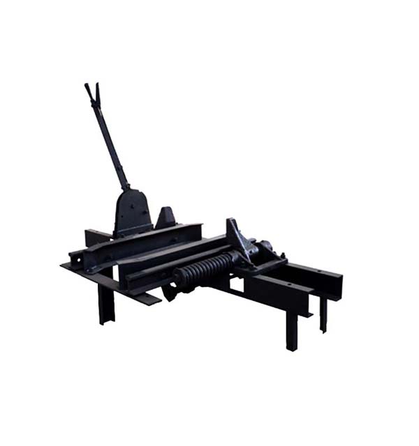 此阻車器為阻輪式阻車器,是礦井車場中將運行的礦車停止在某一個固定點的限位裝置,主要由一對阻爪和彈簧緩沖裝置等組成。阻爪打開時,礦車可自由通過;阻爪關(guān)閉時即阻擋住礦車車輪,是礦車停停止前進。阻車器可分為單式和復式兩種。復式阻車器即兩個聯(lián)動的單式阻車器,相互動作閉鎖,除停止礦車外,還起分解礦車的作用。